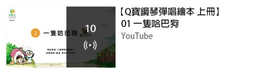 已發表 2020-04-19 分類 影音分享 點擊播放全部 播放 ► 一隻哈巴狗 播放 ► 一隻大火龍 播放 ► 兩隻老虎 播放 ► 拔蘿蔔 播放 ► 不倒翁 播放 ► 十隻小金魚 播放 ► 火車快飛 播放 ► 嚕啦啦 播放 ► 小星星 播放 ► 三明治 點擊播放全部 分享此文: 列印(在新視窗中開啟) 列印 分享到 Facebook(在新視窗中開啟) Facebook 以電子郵件將連結傳送給朋友(在新視窗中開啟) 電子郵件 更多 分享到 Pinterest(在新視窗中開啟) Pinterest 分享到 X(在新視窗中開啟) X 分享到 Telegram(在新視窗中開啟) Telegram 喜歡 正在載入... 相關